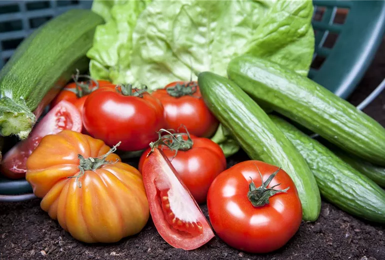Diese Augenweiden werden dann gezielt um Nutzpflanzen ergänzt. Dabei können Sie ganz nach Appetit und Vorliebe Tomaten, Gurken, allerlei Hülsenfrüchte, die verschiedensten Kohlsorten, Sellerie und Küchenkräuter auswählen.