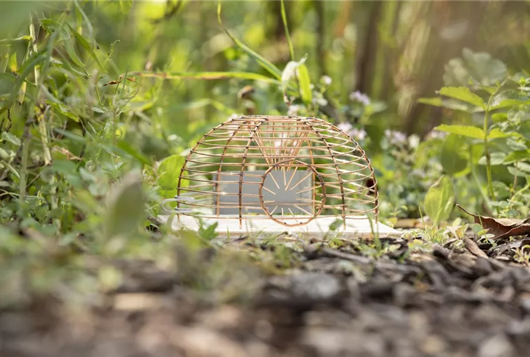 Hat man die ungeliebten Tiere schon im Garten, versucht man es zunächst mit einer milden Tour. Schutz vor Wühlmäusen bieten Vorrichtungen, die ihnen lautstark in die sensiblen Ohren pfeifen. Vor allem Geräte, die Ultraschallwellen in die Gänge senden. Auch ein Angriff auf die empfindliche Nase lohnt sich. Schutz vor Wühlmäusen versprechen Lebensbaum- oder Holunder-Jauche, die man in die Gänge kippt, und ätherische Öle, die man auf die Häufchen träufelt. Kaiserkronen, Knoblauch oder Wolfsmilch zu pflanzen nützt oft, aber nicht immer. Da helfen Wühlmaus-Fallen besser. Der Tierschützer nimmt Lebendfallen und setzt die Nervensägen weit entfernt aus.