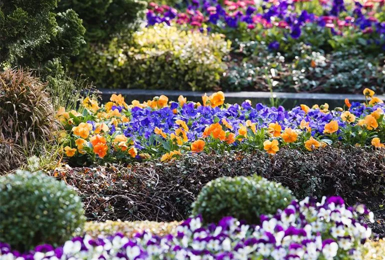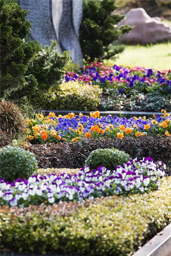 Ein Grab wird meist jahreszeitlich bepflanzt. Im Frühjahr beginnen die Stiefmütterchen den Reigen, wobei auch viele andere Frühblüher möglich sind. Auch Vergissmeinnicht und Veilchen sowie Maiglöckchen sind hier oft anzutreffen, die dann allerdings dauerhaft stehen bleiben.